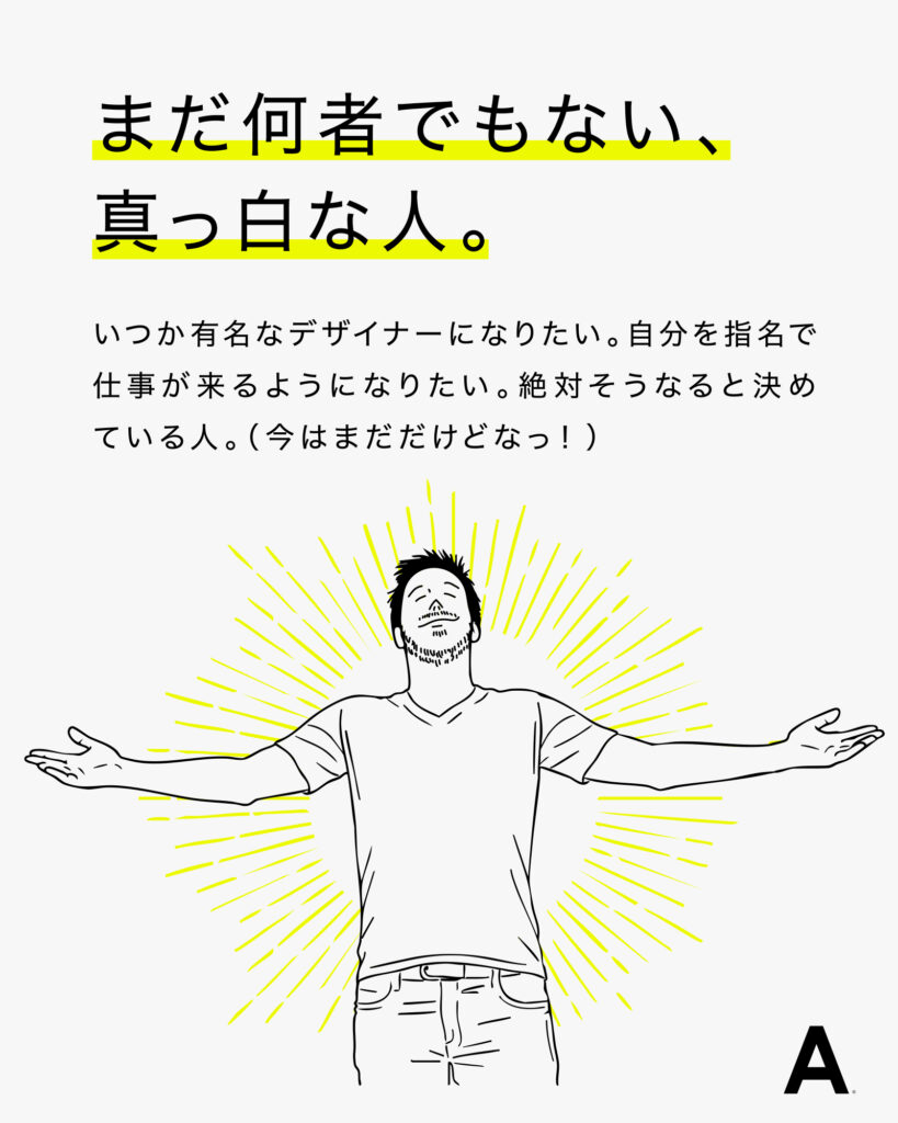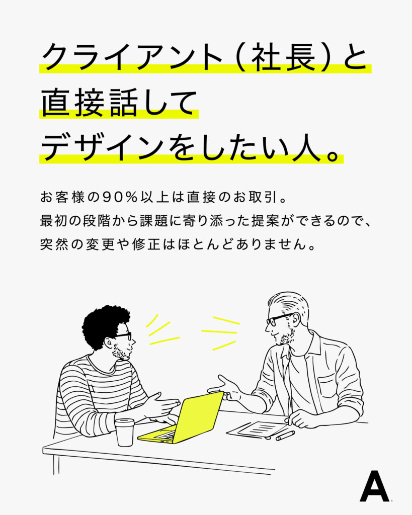 ここで言う経験者の概念ですが、Illustrater/photoshopなどを使えると言う意味ではなく、アートディレクターやお客様の意向を聞き取り、自分で考えてデザインが出来る(したいと強く思う)方と言うニュアンスです。